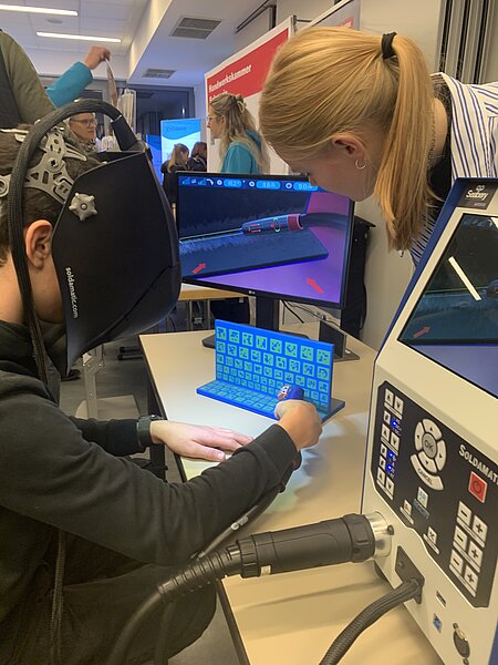 Diese präsentierten nicht nur ihre Ausbildungs- und Studienangebote, sondern luden die Besucher auch ein, verschiedene berufsspezifische Tätigkeiten direkt auszuprobieren. So konnten die Schülerinnen und Schüler virtuell schweißen lernen, selber Brötchen backen, Treppenteile bauen oder Sehtests durchführen. Erfreulich war außerdem, dass die Veranstaltung sowohl von den Schülerinnen und Schülern als auch von den Eltern sehr gut angenommen wurde. „Insgesamt hat mir die Berufsmesse sehr gut gefallen und war für mich sehr informativ, weil sehr unterschiedliche Firmen teilgenommen haben und die Mitarbeiter sehr freundlich waren“, zeigte sich Nele Aschendorf, Schülerin der Klasse 10ra begeistert.