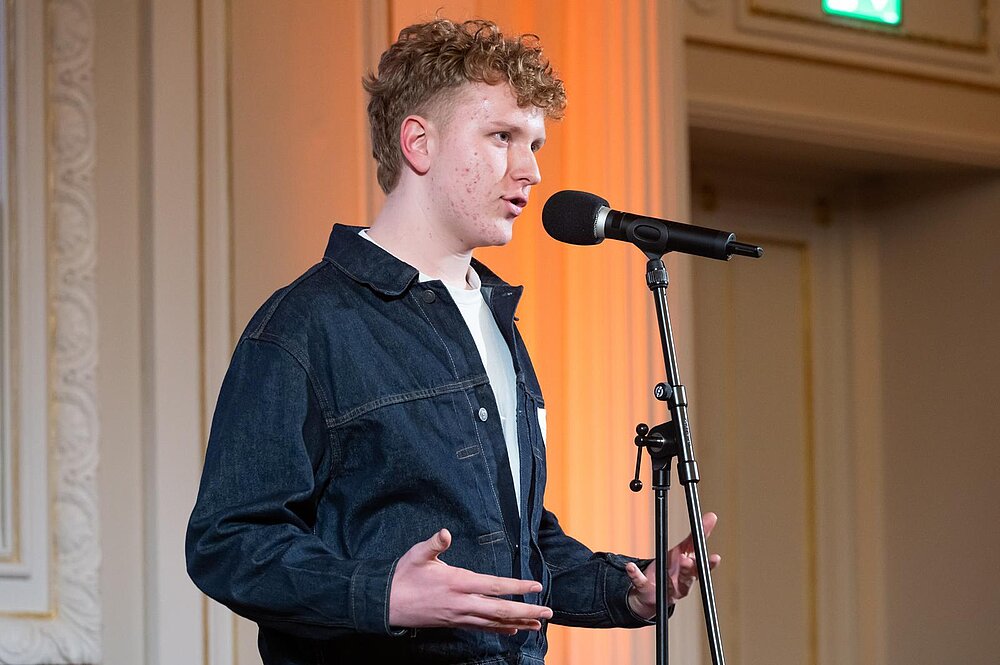 Eine Jury wählte aus rund hundert Einsendungen zehn Texte sowie eine Gruppenarbeit für die Präsentation in der Staatsbibliothek aus. Über hundert Teilnehmende aus mehreren Bundesländern kamen zusammen, um ihre Beiträge vorzustellen und sich auszutauschen. Einer der Gewinner ist Arved Lenschow aus der 9. Klasse der Niels-Stensen-Schule, welcher mit seiner Klassenlehrerin, Kerstin Brinkmann, am 11.02.2026. im voll besetzten Wilhelm-von-Humboldt-Saal der Staatsbibliothek in Berlin an einer Lesung und einem regen Austausch teilnahm.