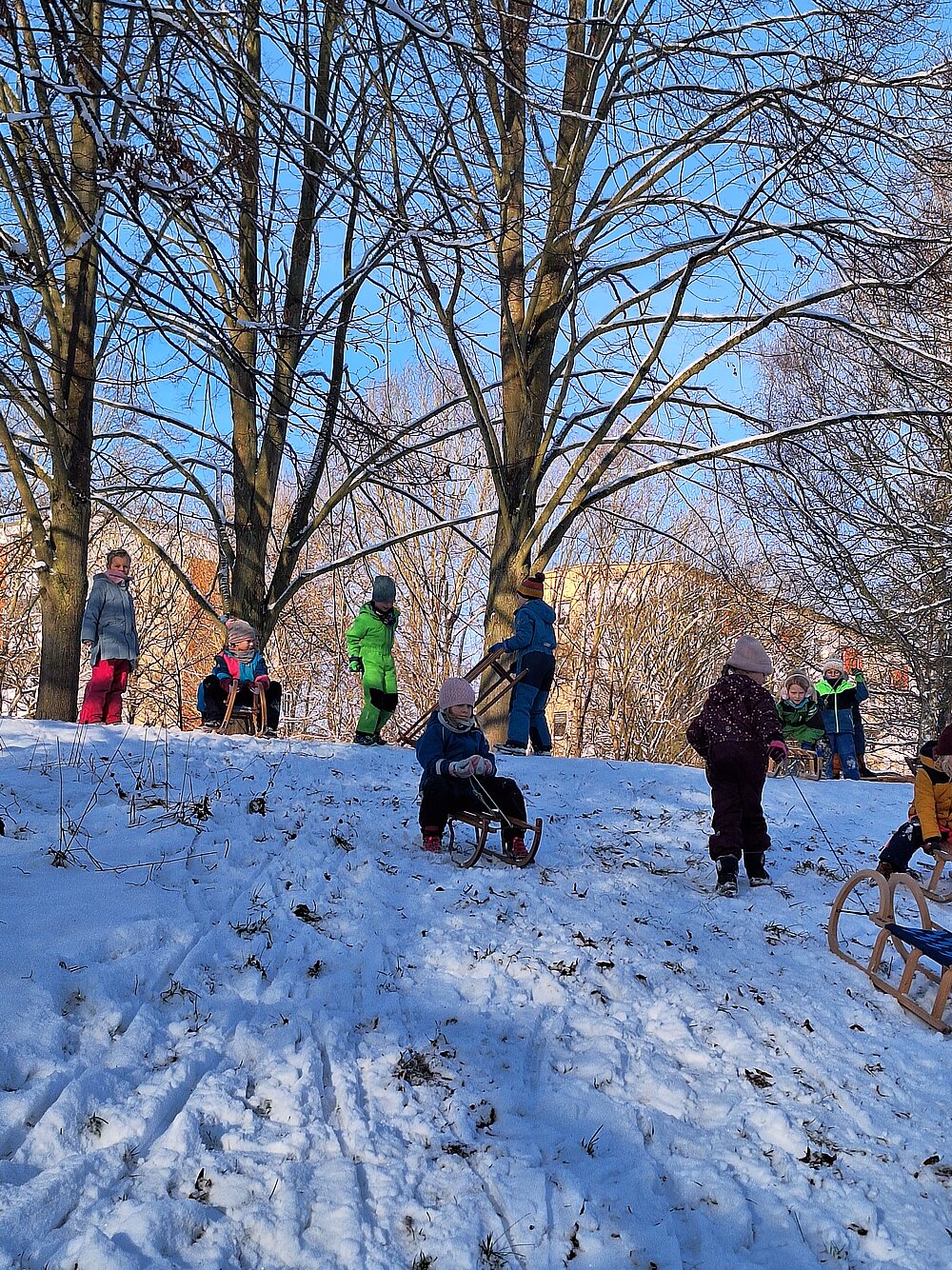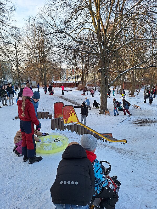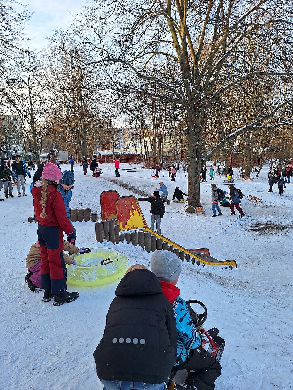 Ideal ist da natürlich auch unser Kringelgrabenpark, der sogar einen kleinen Rodelhügel hat.